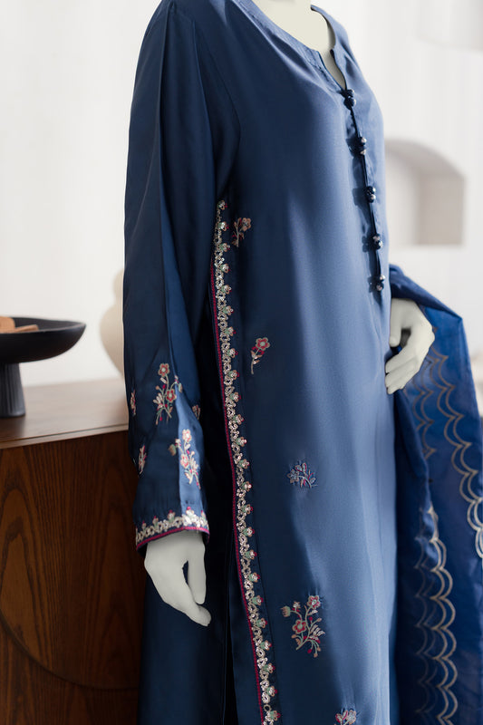 Embroidered Chiffon Frock - Teal