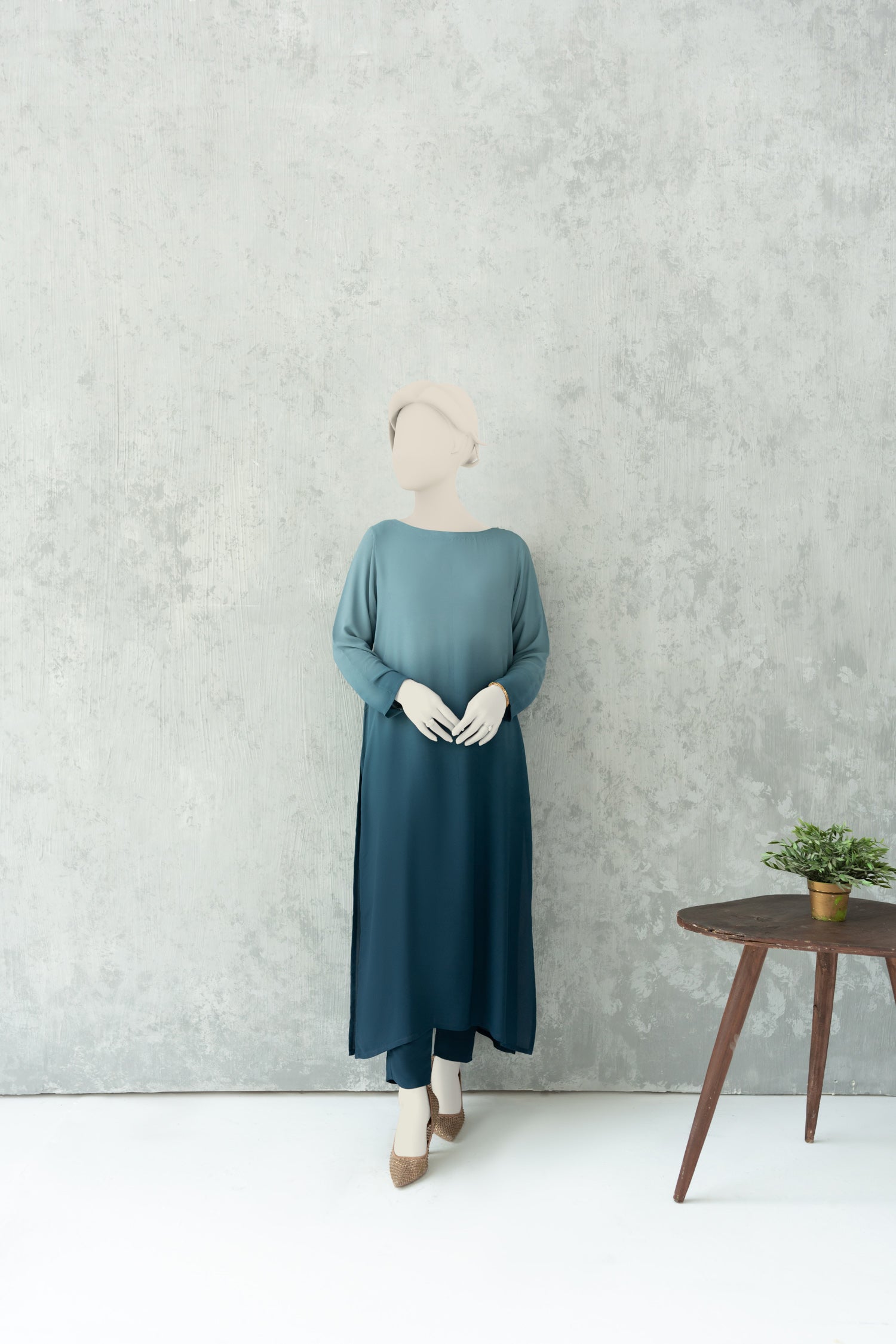 - Stitched Ready to Wear Suit Two Tone Premium Grade Double Georgette - NO SLIP REQUIRED