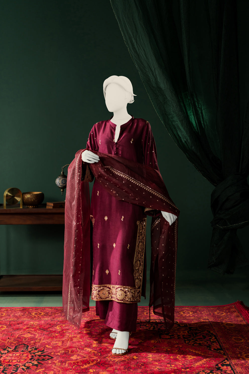 Raw Silk 3pc - Burgundy